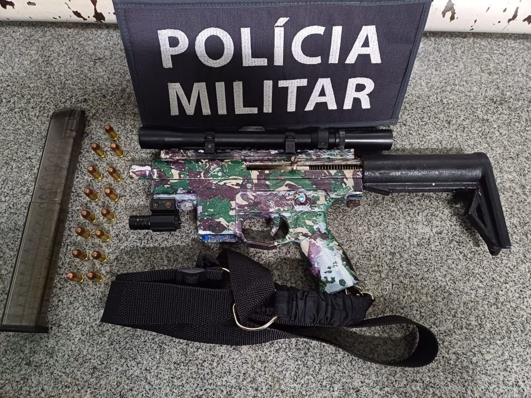 Neste domingo (09), a Polícia Militar (PM) apreendeu uma submetralhadora de fabricação caseira calibre 380, durante patrulhamento em Joacima, Itapemirim. A arma estava equipada com luneta, mira a laser e um carregador alongado com 15 munições do mesmo calibre.